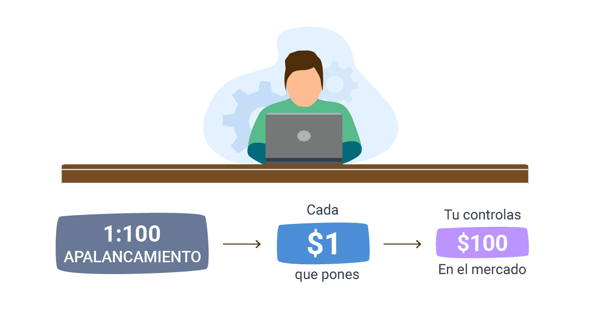 Esto nos lleva al apalancamiento, un concepto fundamental que he mencionado y que es parte vital del trading de forex. Te permite controlar una posición grande en el mercado con una cantidad de capital que es relativamente pequeña. Una relación de apalancamiento de 1:100 significa que por cada dólar que pones, controlas cien dólares en el mercado.