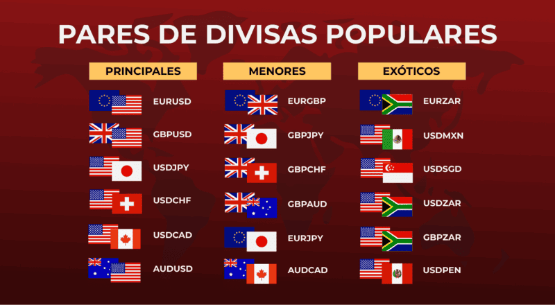 - Exóticas (Exotics): Pares menos líquidos que involucran monedas de mercados emergentes, como USD/PEN (estas a menudo vienen con spreads más altos y mayor riesgo).