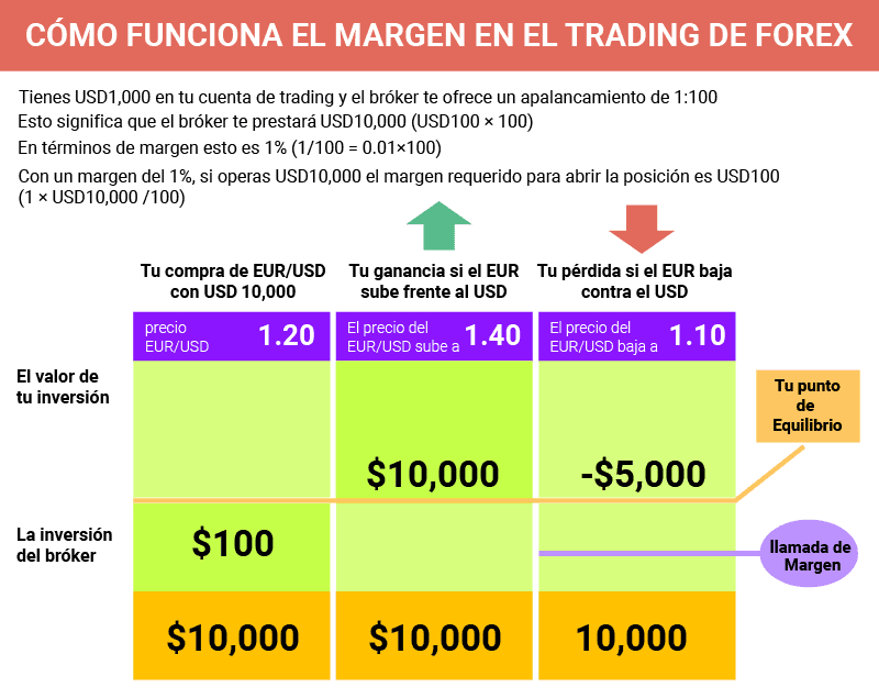 El apalancamiento está estrechamente ligado al margen, que es la cantidad que tu bróker retiene como garantía para mantener la operación abierta y se muestra típicamente como un porcentaje del tamaño de la operación. A partir de eso, puedes calcular cuánto apalancamiento permite tu bróker.